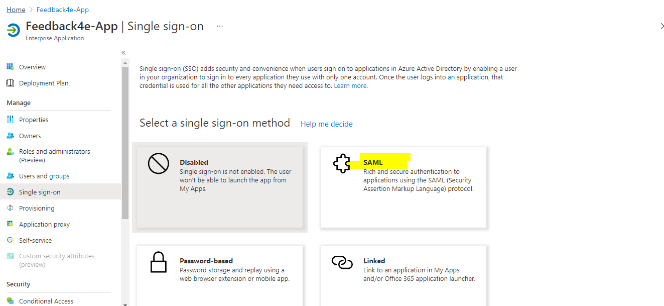 2. adım "setup single sign on" tıkla ve SSO metodu olarak SAML seç.