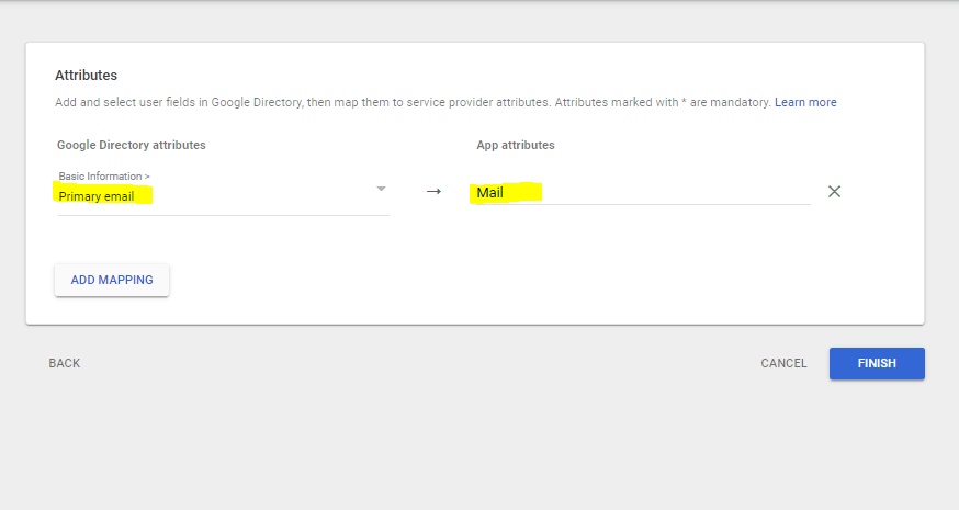 4. adımda sarı ile işaretlenmiş alanları ekle. Mail attribute büyük harfle baslamali