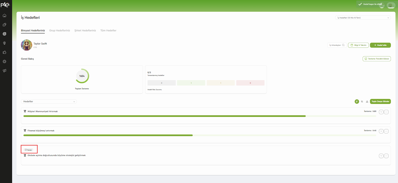 Bir başarı kriterine check-in yaptıysan, sistem otomatik olarak ilerleme yüzdesini de günceller. Peki bu ilerleme nasıl hesaplanıyor? Hadi birlikte bakalım ? ? Başarı Kriteri Değerleri Nedir? Her başarı kriteri aşağıdaki üç değeri içerir: Alt Limit ...