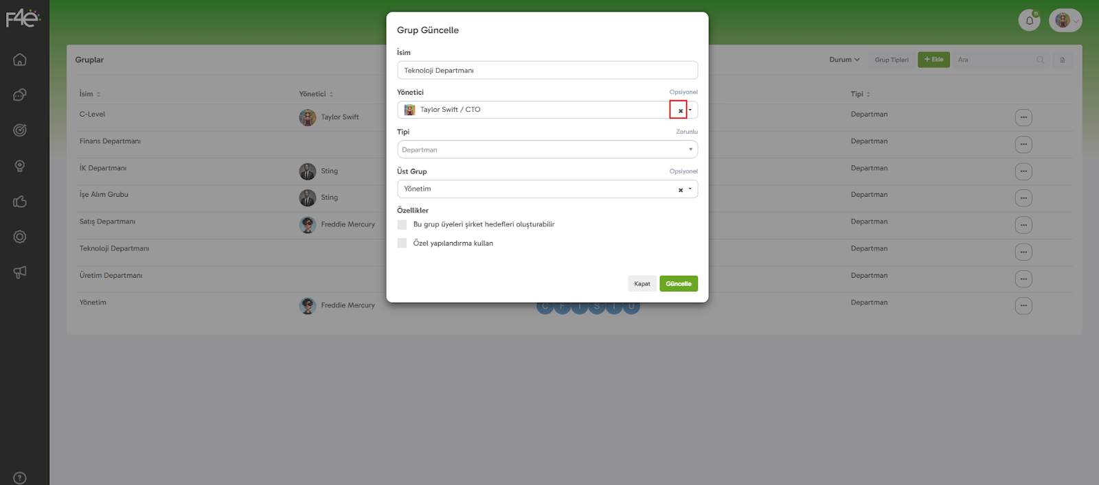 Yöneticiyi atadığında grup içindeki yetki ve yönetim sorumluluğu da yeni yöneticine geçmiş olacak. Bu kadar basit! 🎯