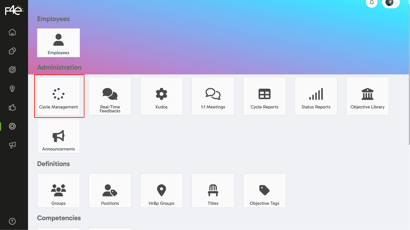 ? How to Create a Performance Evaluation Cycle? To start the performance process, you first need to create a new cycle. ? Where to Start? Navigate through the menu: Administration > Cycle Management > New Cycle On the first page, select the ...