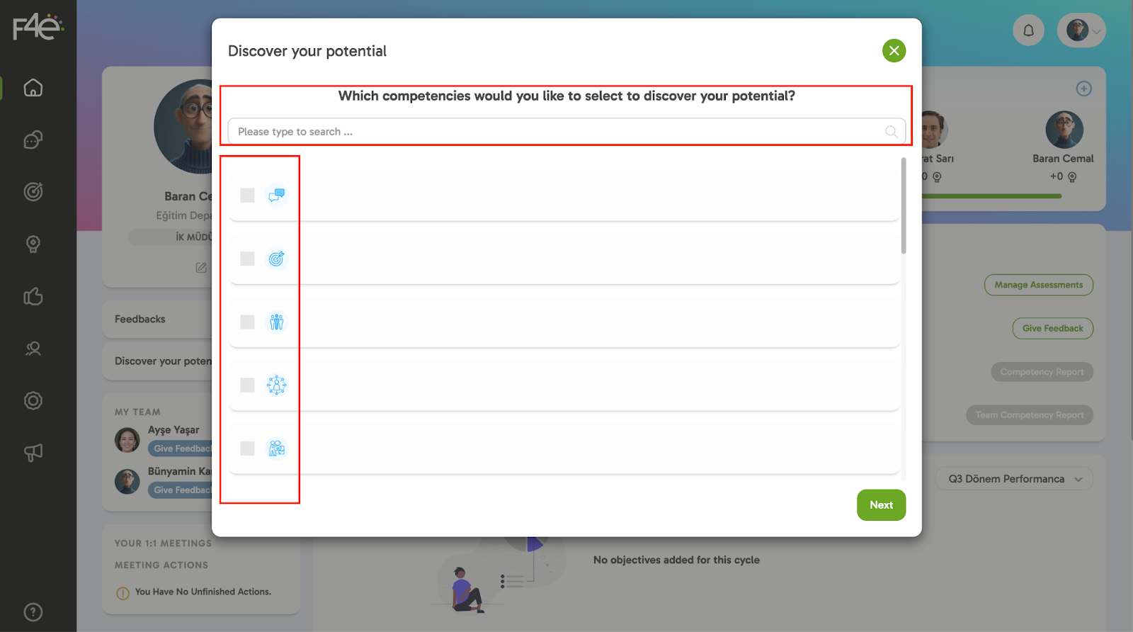 In the pop-up window, select at least 2 competencies you want feedback on.