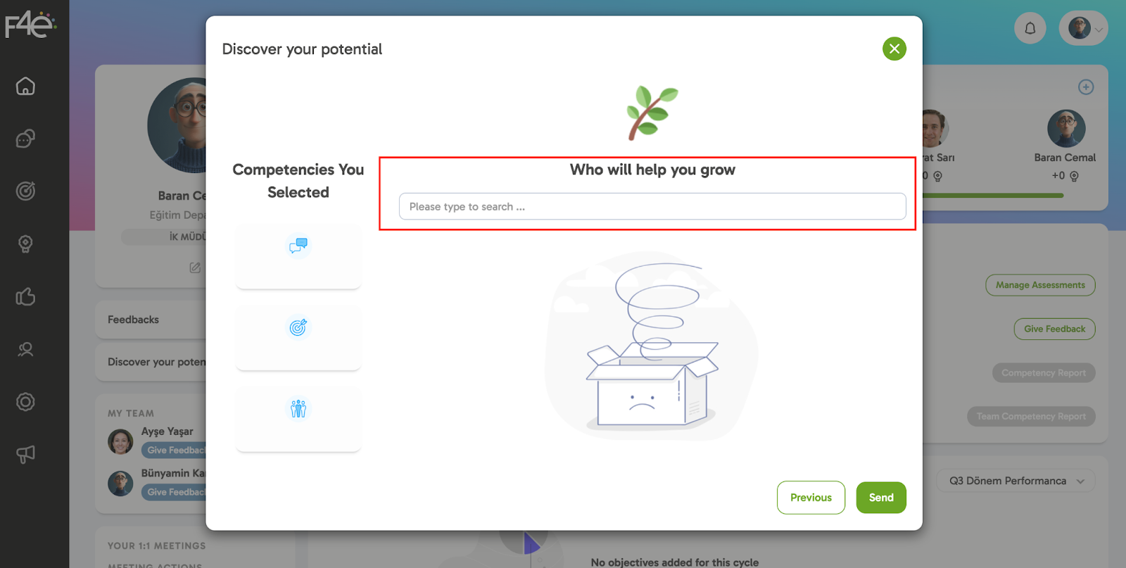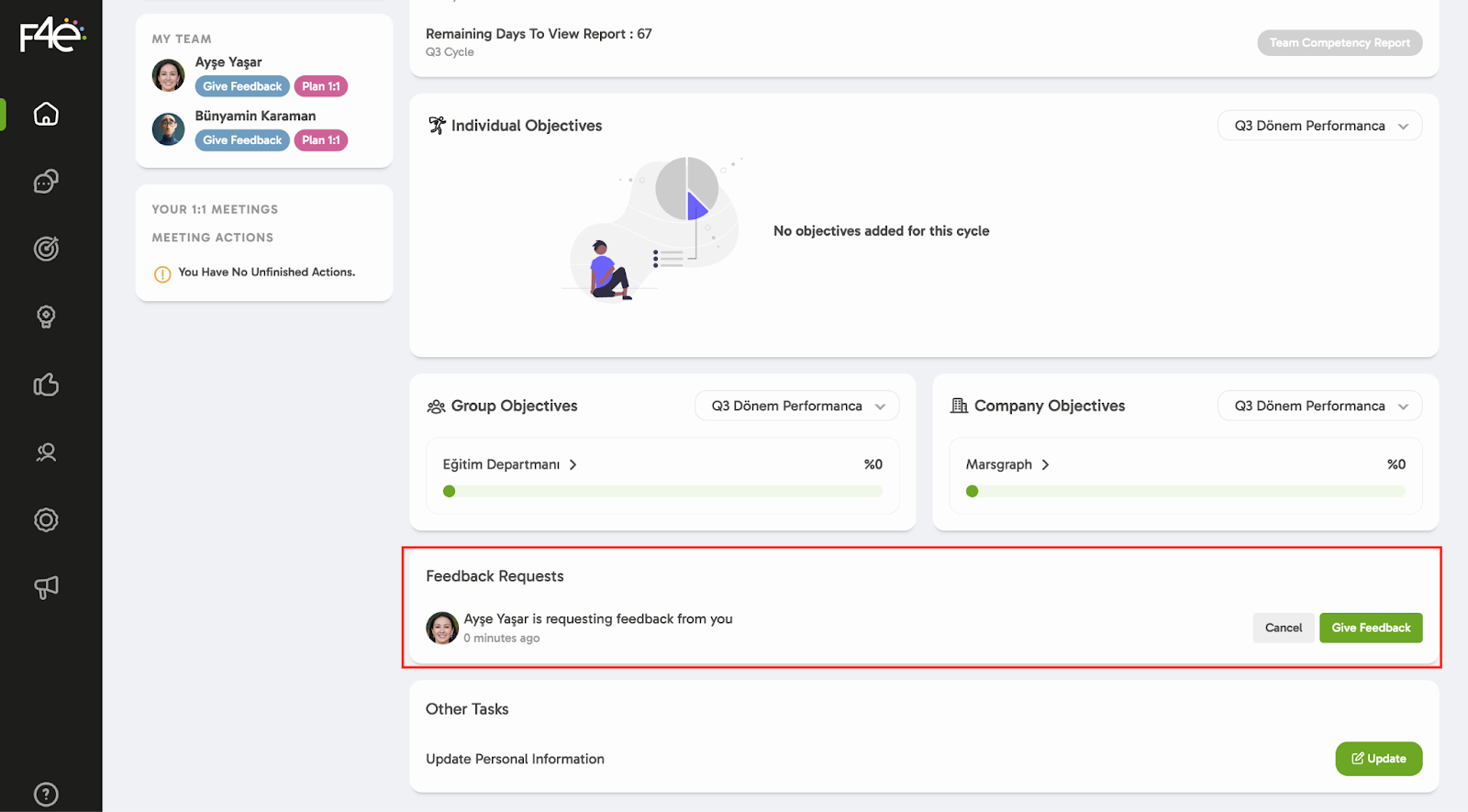 Users can request 360-degree feedback from anyone, at any time, on the areas they want to improve.