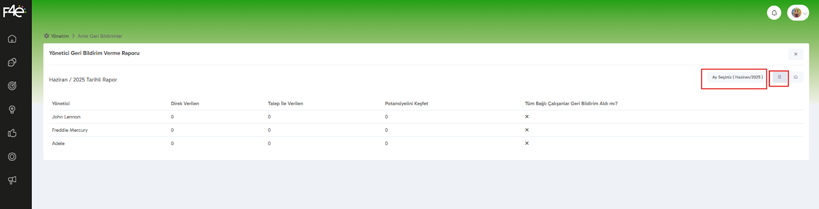 Bu alanda yöneticilere özel geri bildirim performans raporu yer alır.