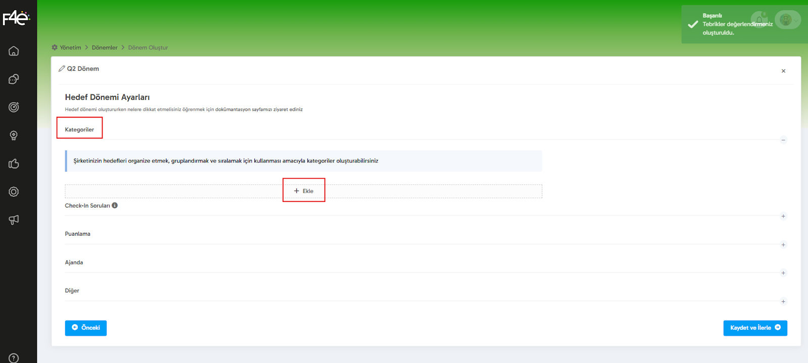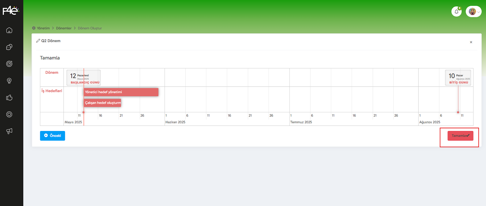 Ve işte bu kadar! 🎉 Hedef dönemini başarıyla oluşturmuş oldun!