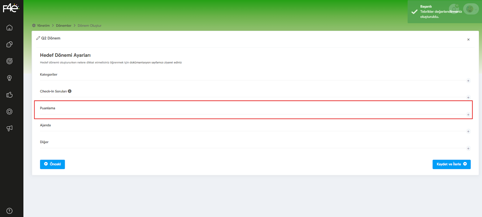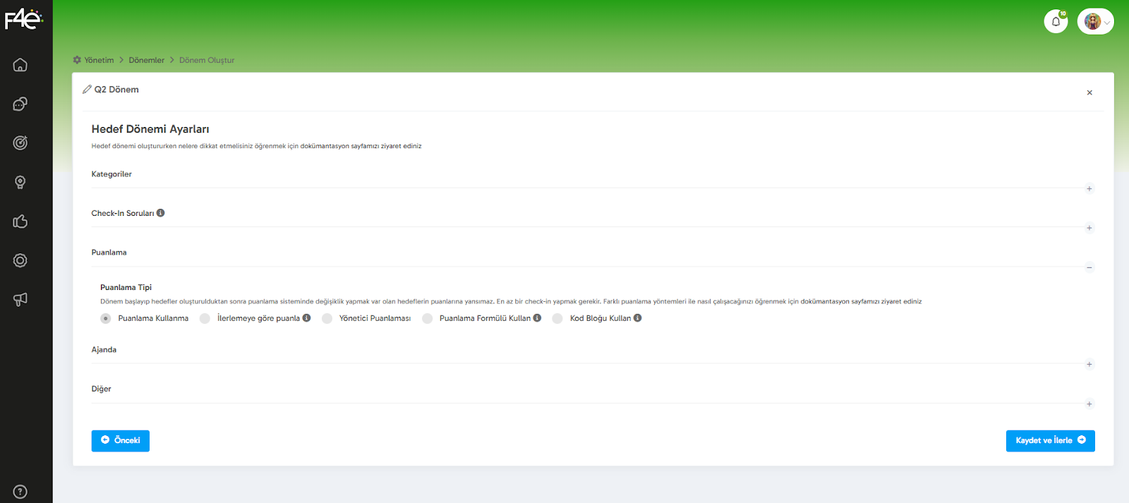 İş hedeflerine ait dönemi kurarken, döneme ait hedefleri puanlayabileceğiniz çeşitli yöntemler sistemde mevcut. Bunları adım adım inceleyelim.