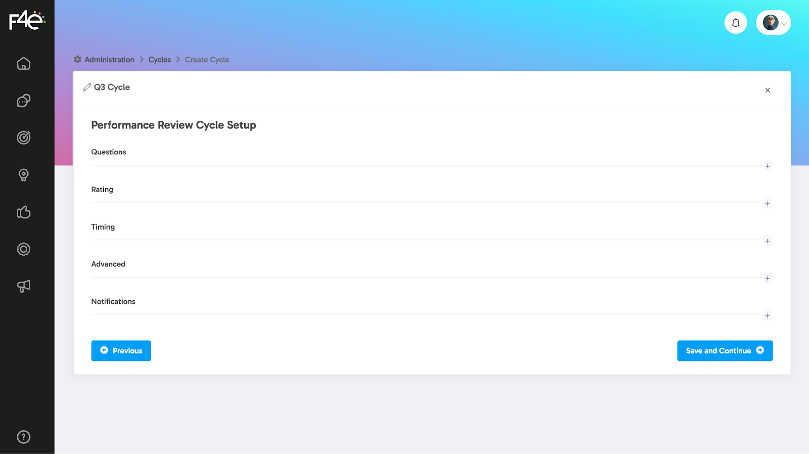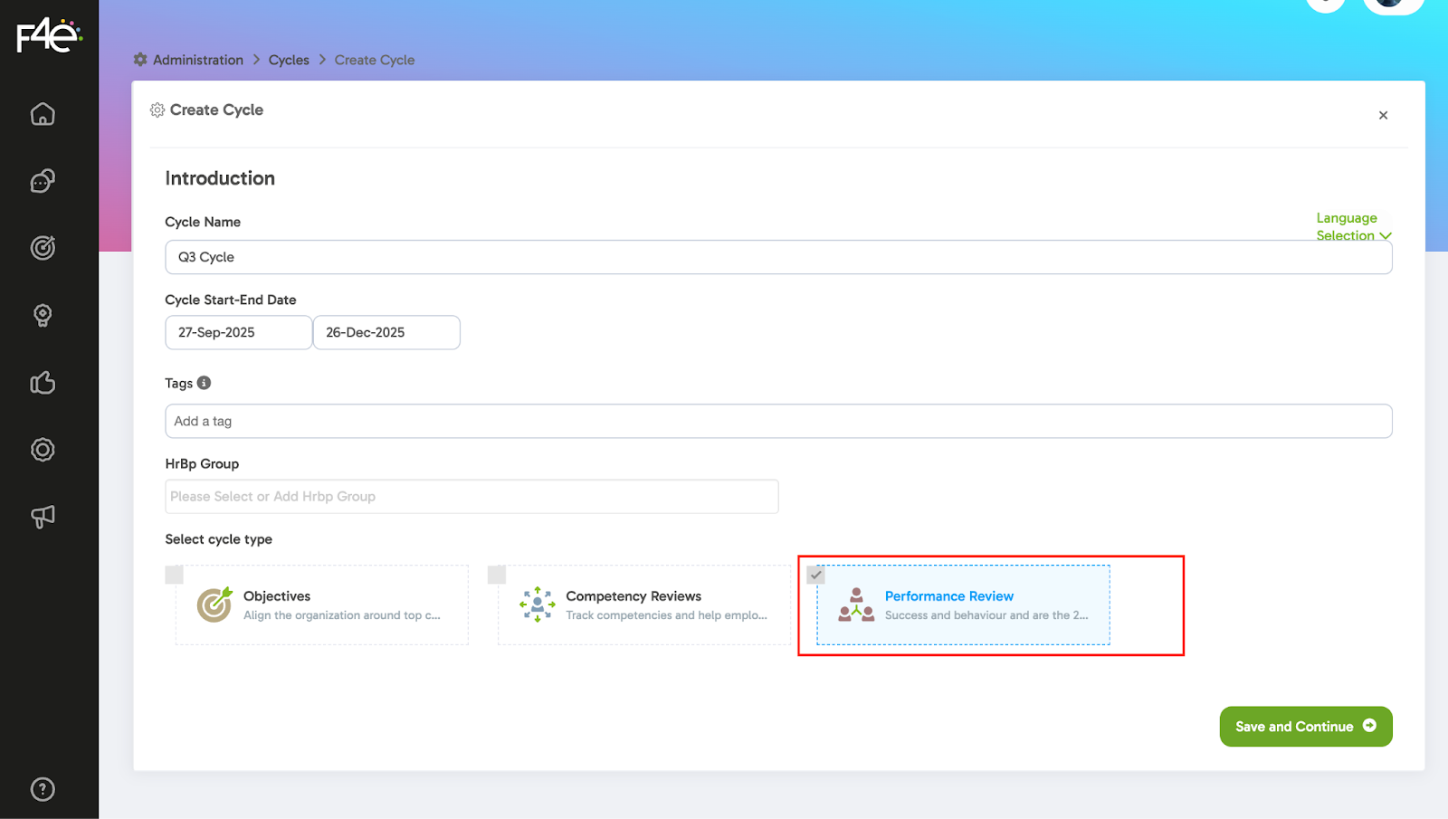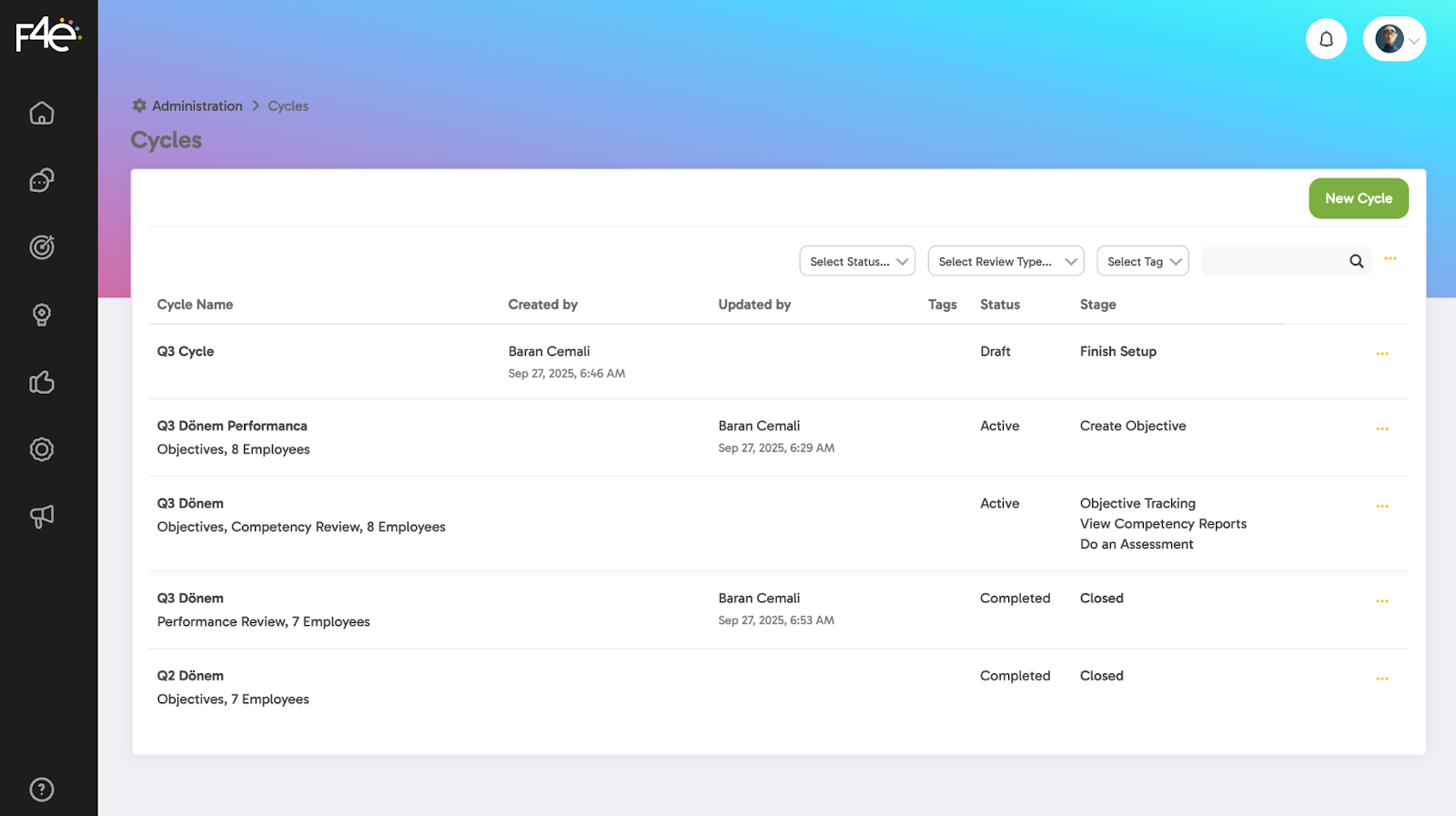 To start the performance process, you first need to create a new cycle.