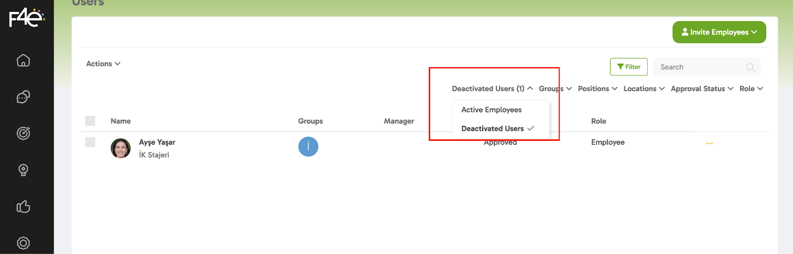 Go to Administration Panel > Employees > Filter > Deactivated Users.