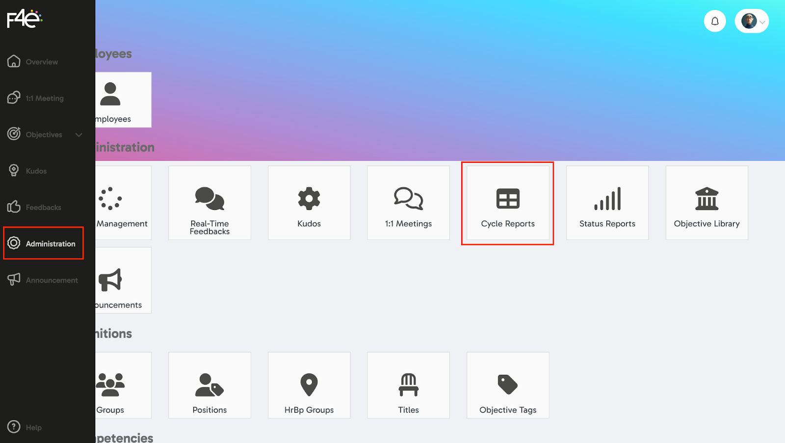 ? How to Create a Performance Evaluation Cycle? To start the performance process, you first need to create a new cycle. ? Where to Start? Navigate through the menu: Administration > Cycle Management > New Cycle On the first page, select the ...