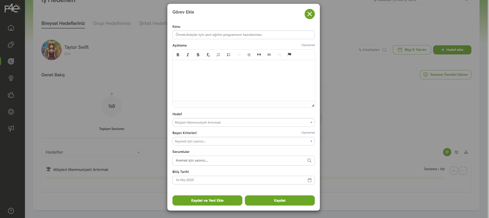 Bu görevin hangi hedefe bağlı olduğunu buradan seç. Hedefle eşleşmesi şart.