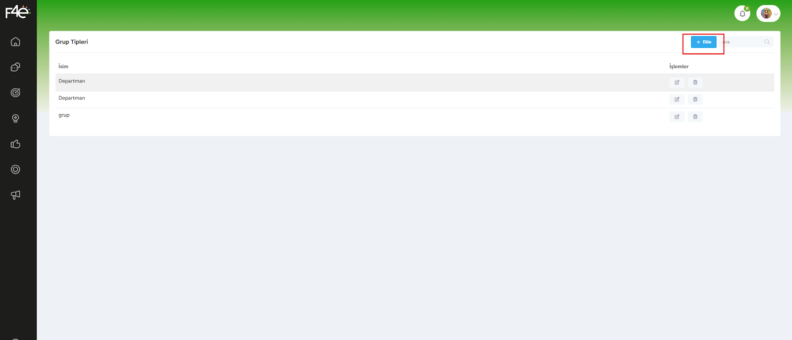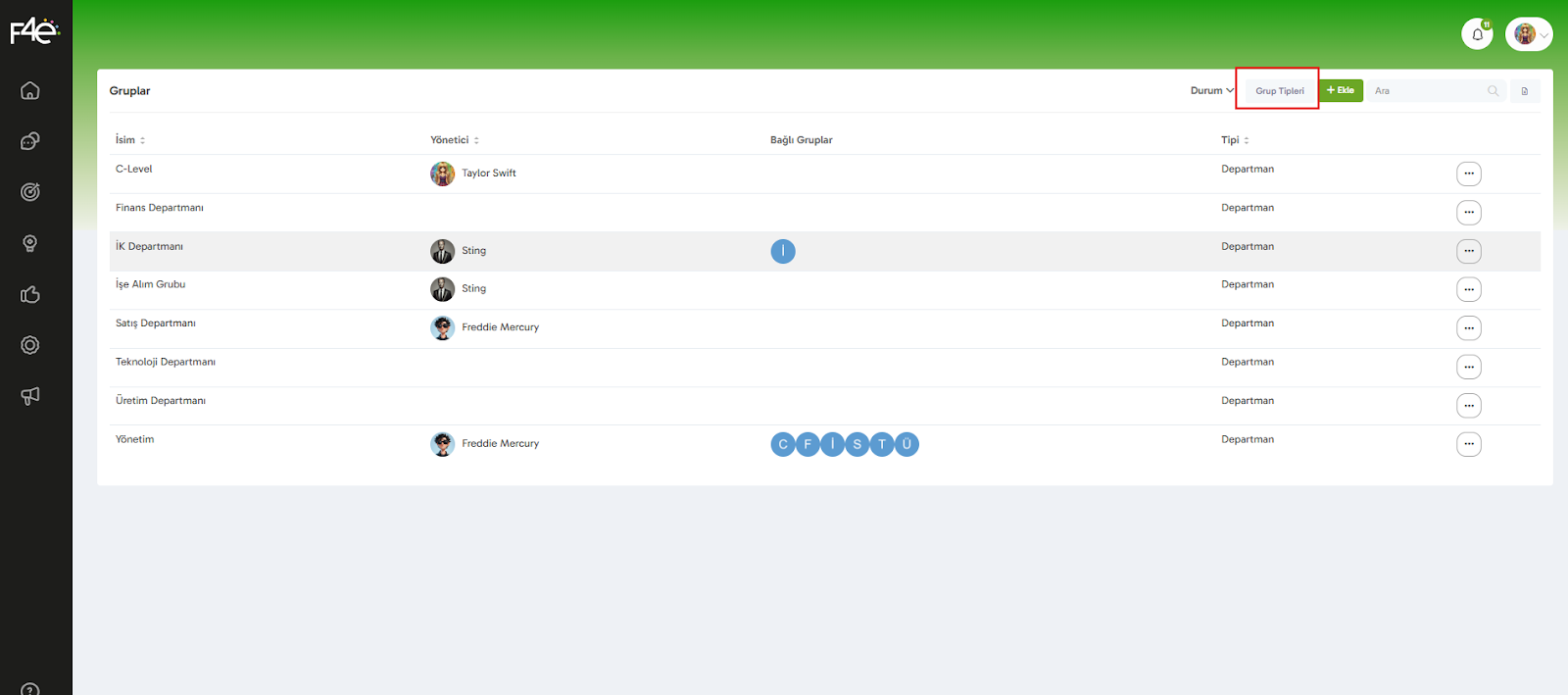Kendi yapınıza özel yeni bir “tip” de yazabilirsin. Bunun için siteme grup tipini tanımlaman lazım. Grup Ekleme butonunun hemen solunda yer alan “Grup Tipleri” butonuna tıklayarak dilediğin kadar grup tipi ekleyebilirsin.