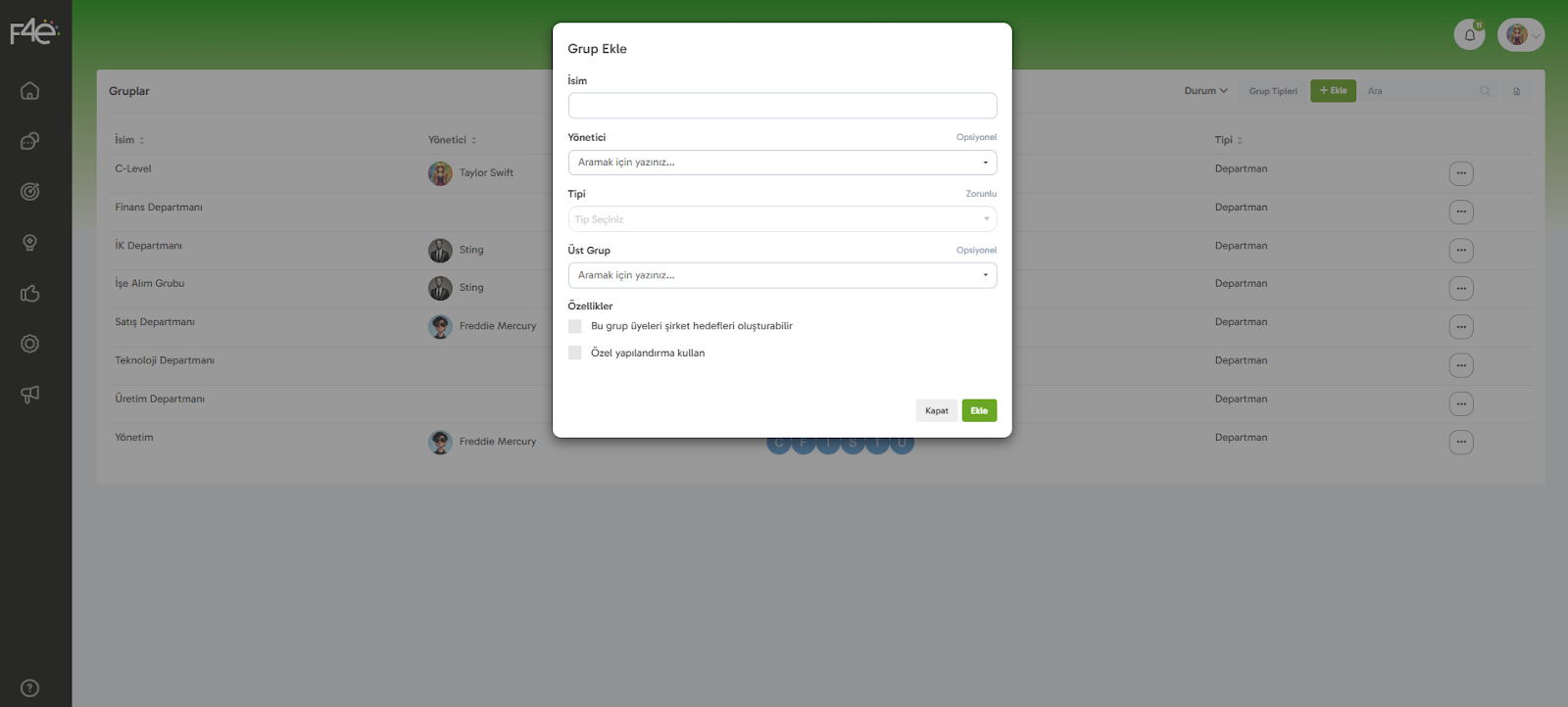İstersen bu gruba bir yönetici atayabilirsin. Aynı kişi birden fazla grubun yöneticisi olabilir.