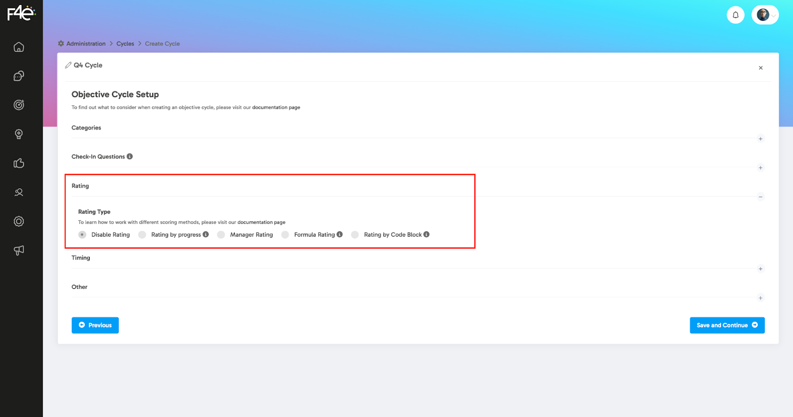 When setting up a Business Goals period, the system offers several scoring methods you can choose from.