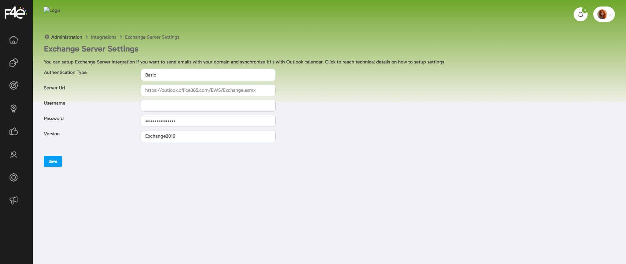 Define your Exchange Server URL (Microsoft EWS API URL) and Version information in consultation with your IT department.