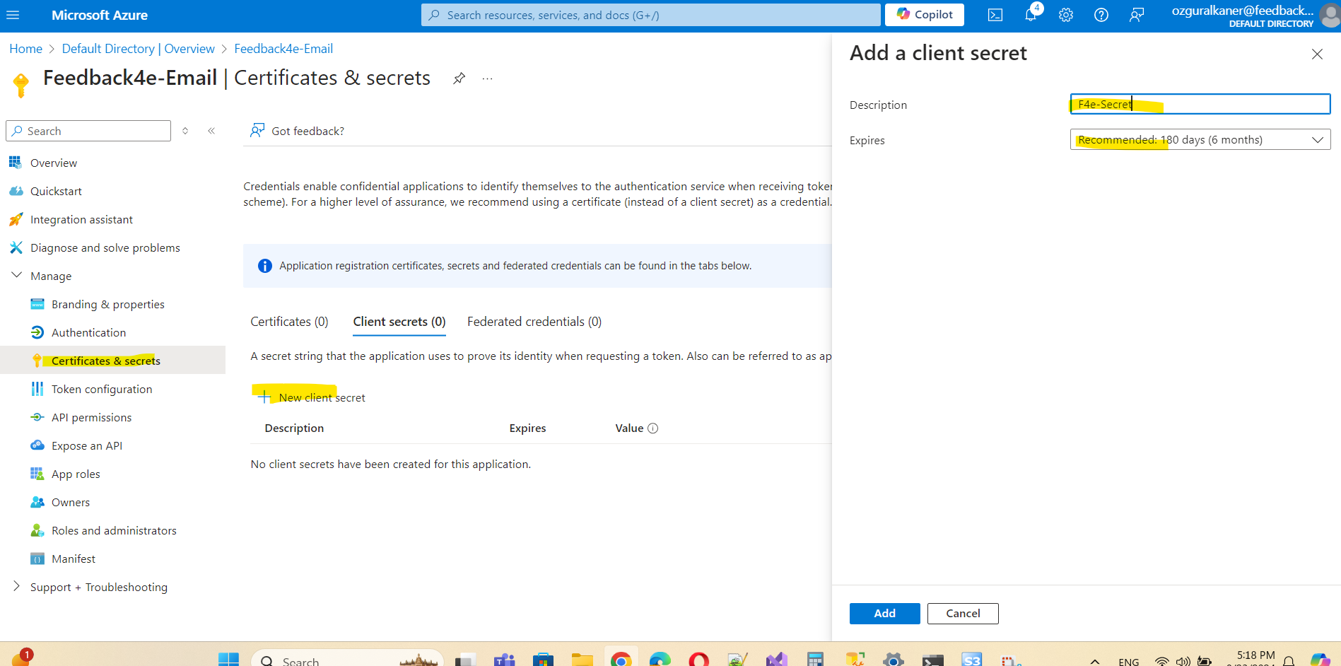 Now create the email account that will be used for sending messages, and in the F4E interface, enter: