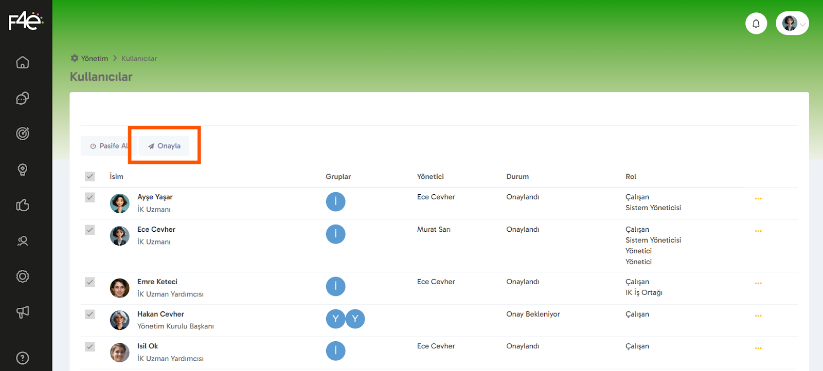 API Kullanımı: Eğer kullanıcılar API ile HRIS sisteminizden gönderildiyse, bu kişiler otomatik olarak onaylanır.