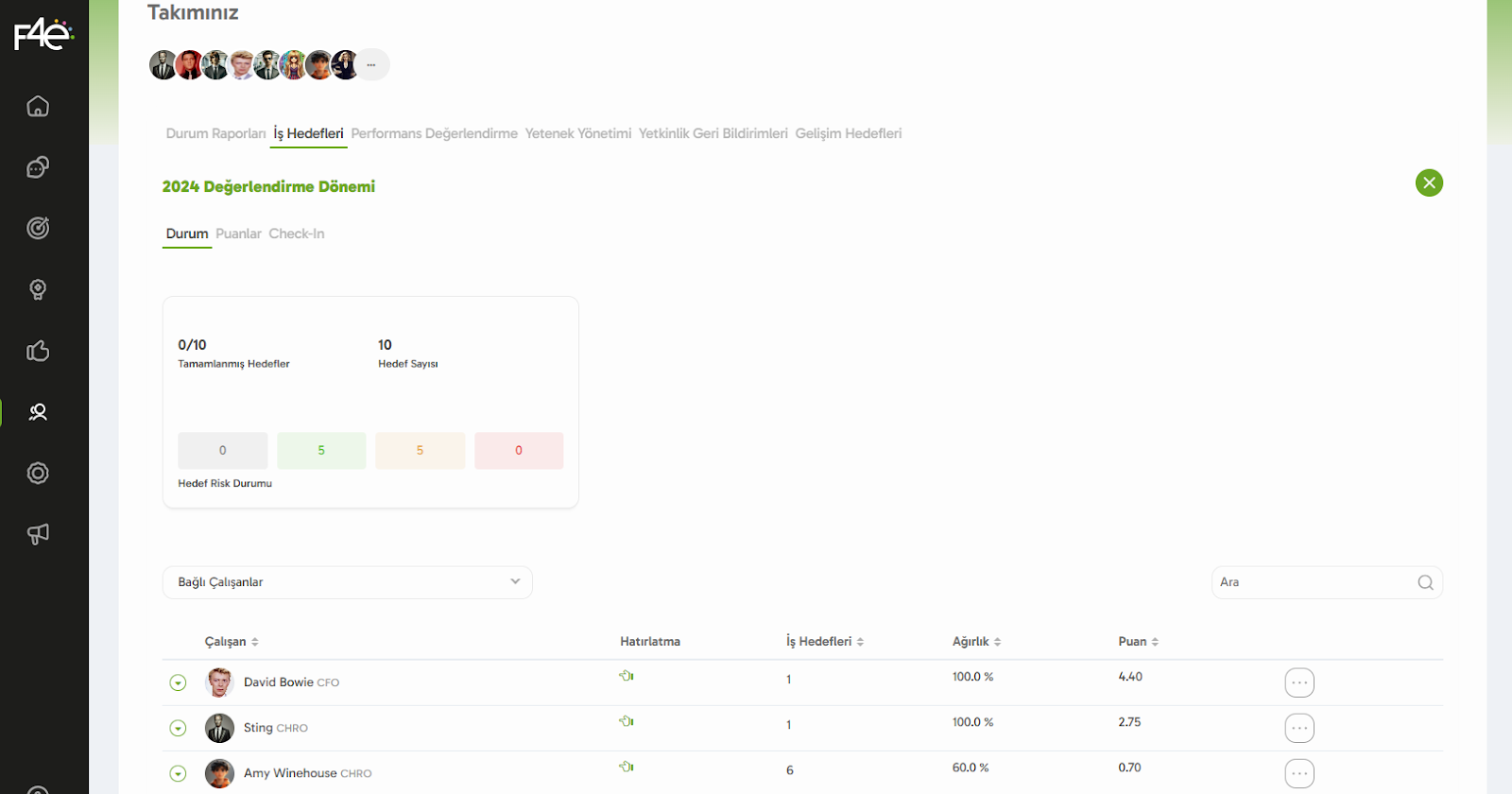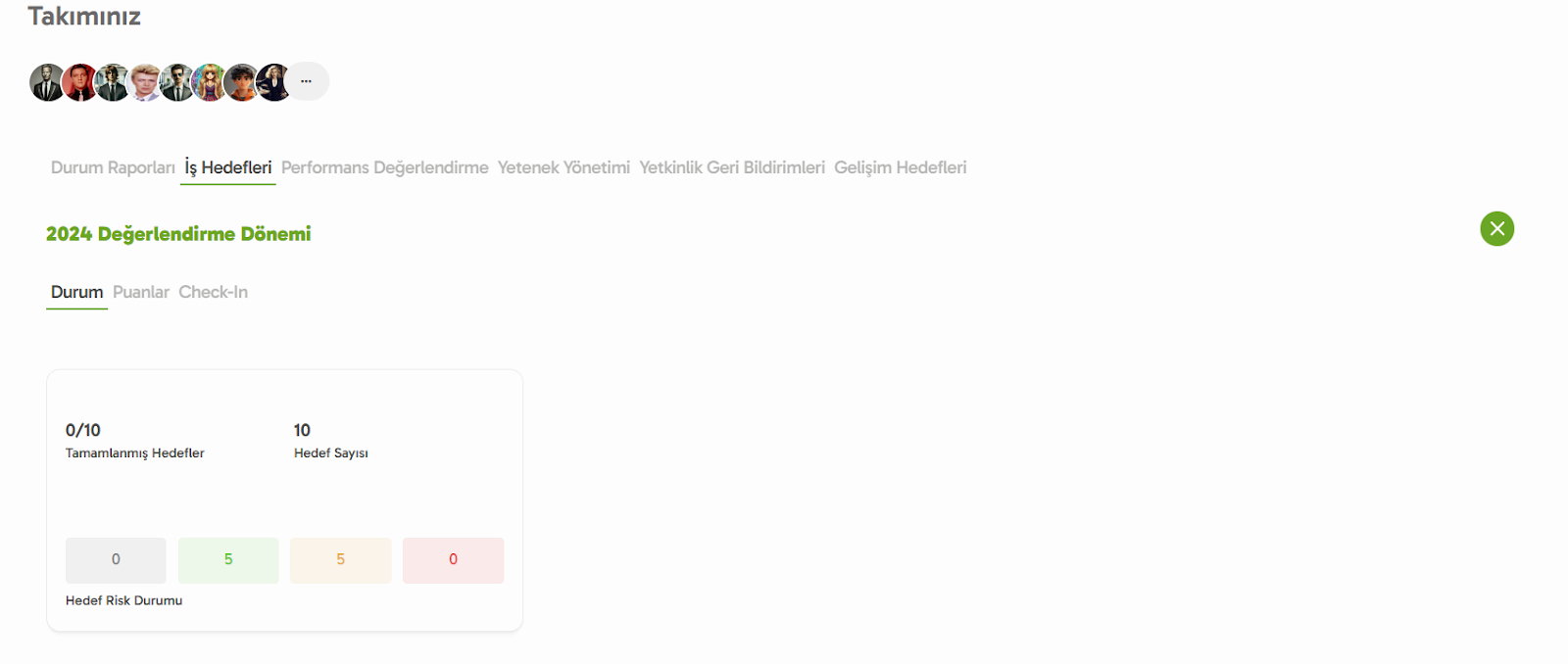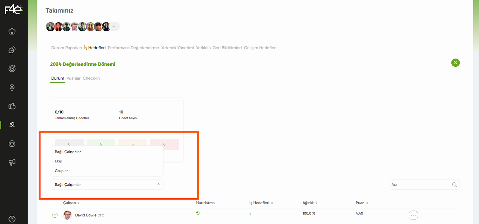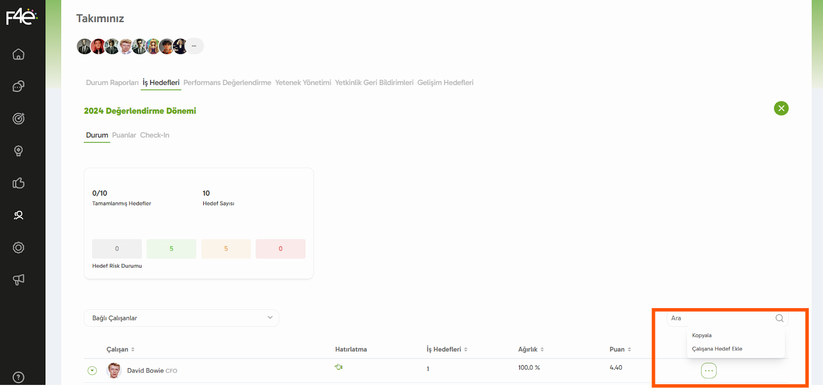 Hedef Ekle: Yeni hedef mi lazım? Ekibindeki çalışanın yer aldığı satırda bulunan “...” butonuna tıkla ve “Çalışana Hedef Ekle” seçeneğini seçerek hemen ekle!