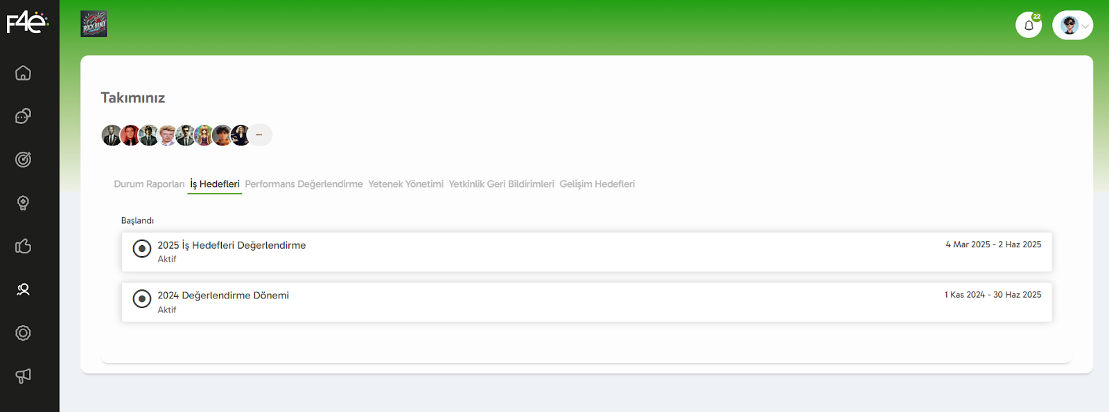 “İş Hedefleri” sekmesini seçerek bağlı çalışanlarının, grup ve ekiplerinin hedeflerini görüntüleyebilirsin. Haydi keşfetmeye başla! 🚀