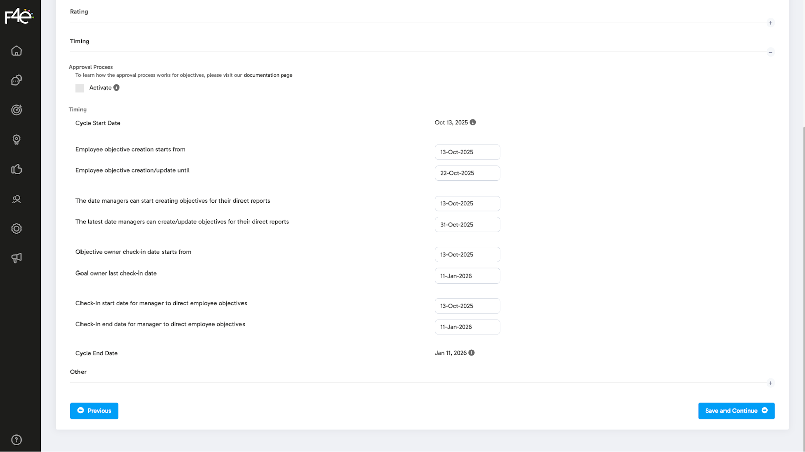 (These dates determine the timeframes for actions such as target creation and approval.)
