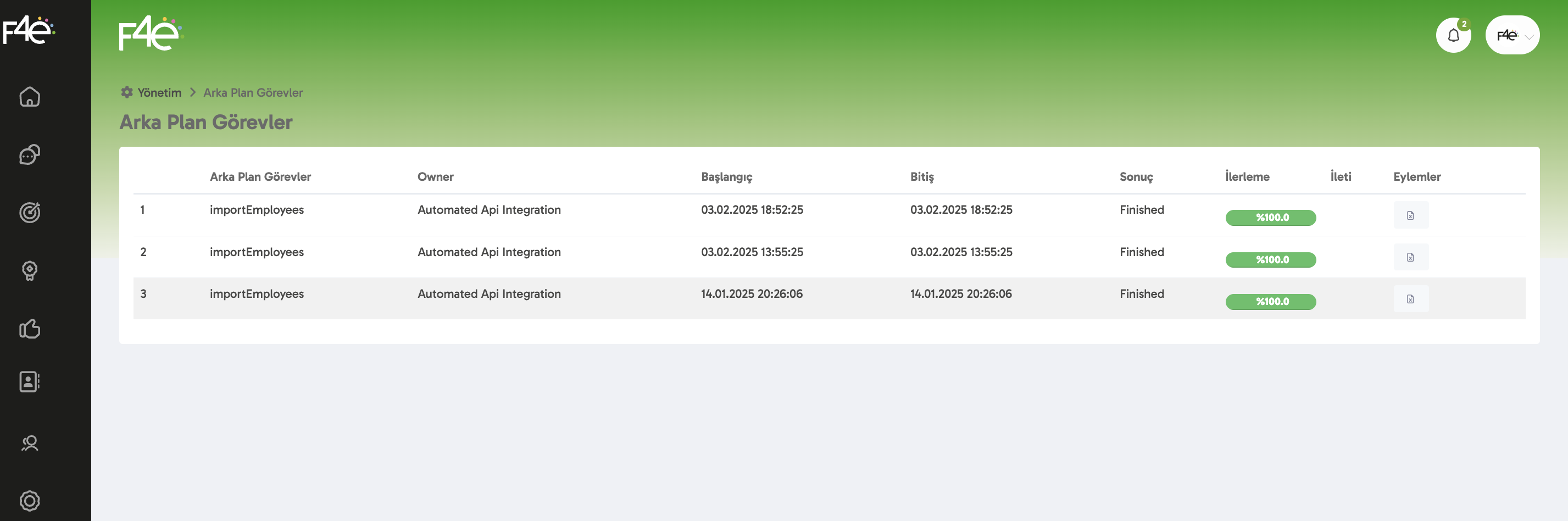 Yönetim Paneli > Entegrasyonlar > Arka Plan Görevler