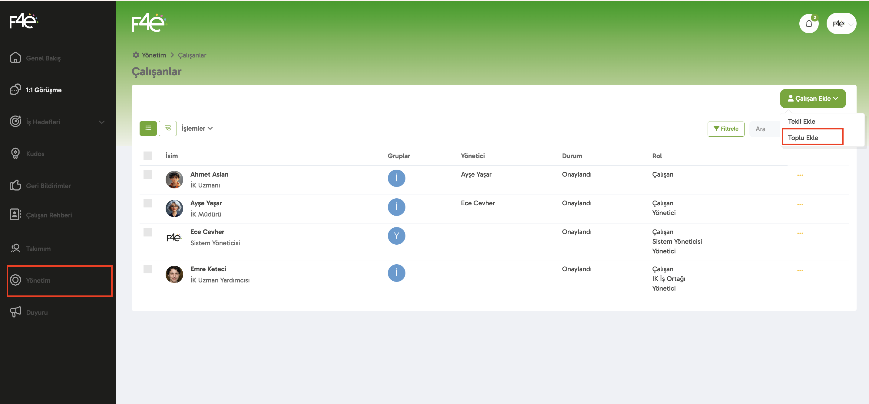 Yönetim Paneli > Çalışanlar > Çalışan Ekle > Toplu Ekle