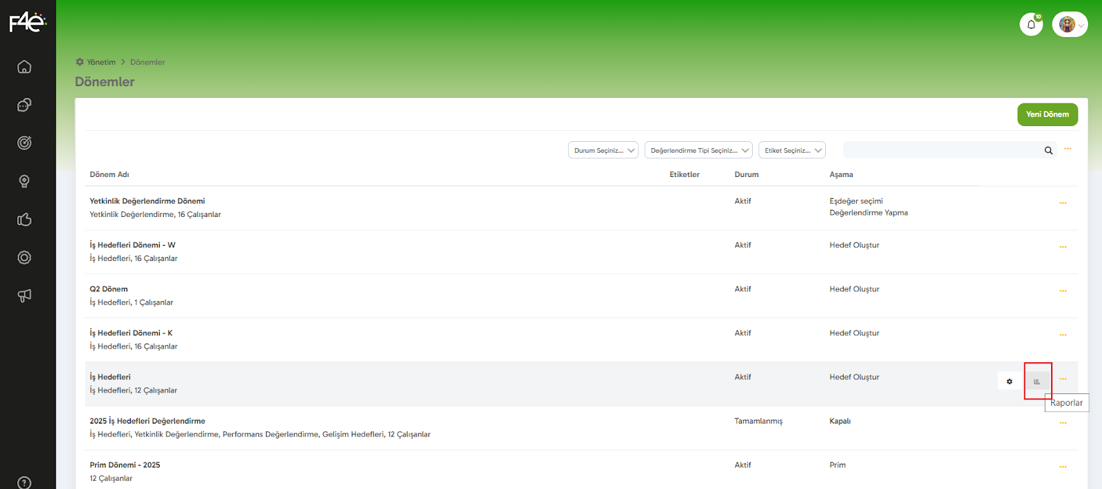 İlgili dönemin Raporlar ikonuna tıklıyoruz. (Evet, o küçük grafik gibi duran ikona! 📈)