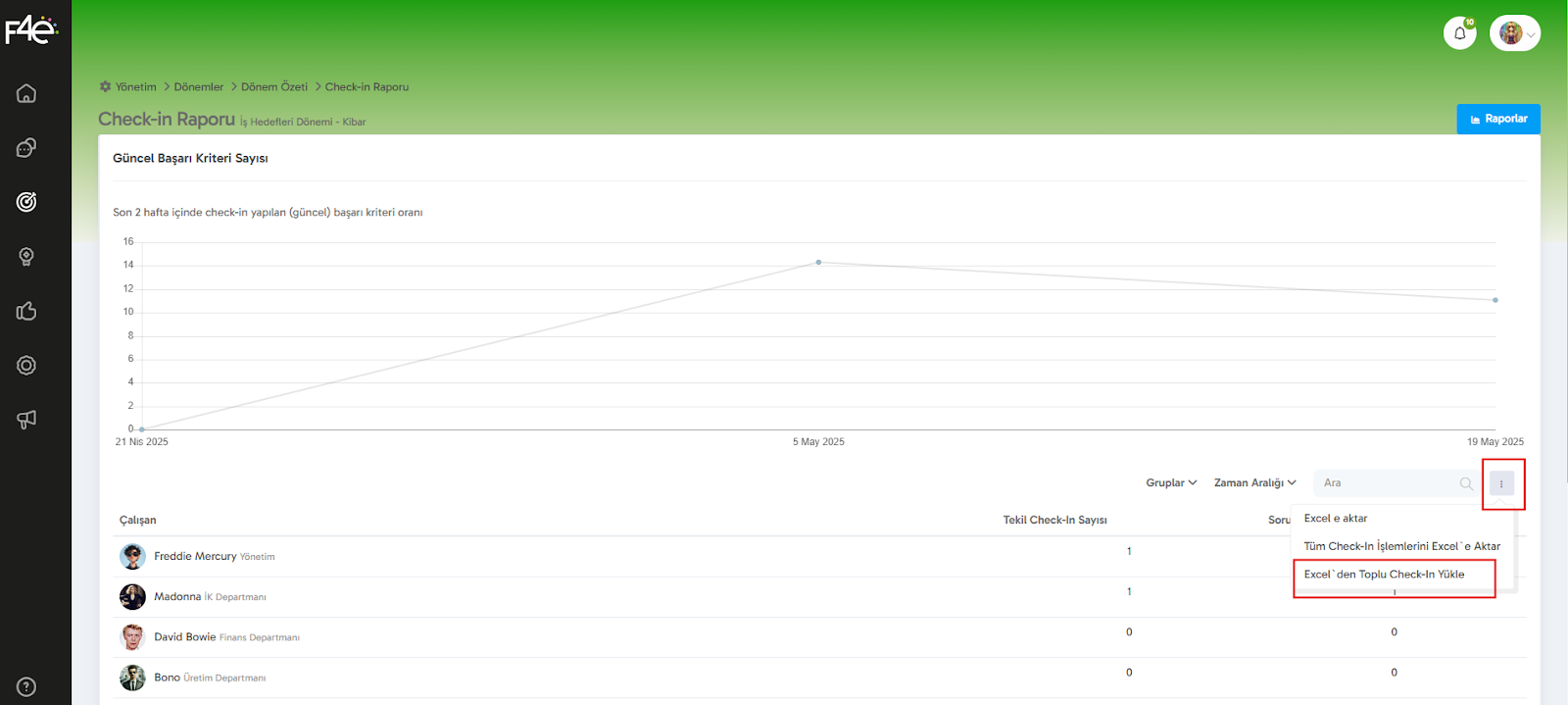 Önce, ekranın sağ tarafındaki "Toplu Check-in için Başarı Kriterlerini Excel'e Aktar" butonuna tıklıyoruz.