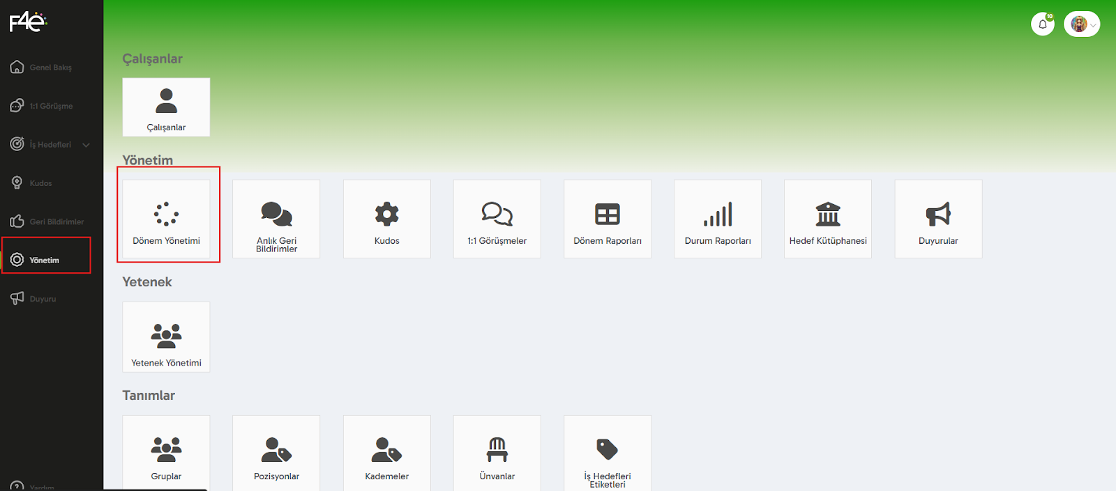 👉 Yönetim > Dönem Yönetimi